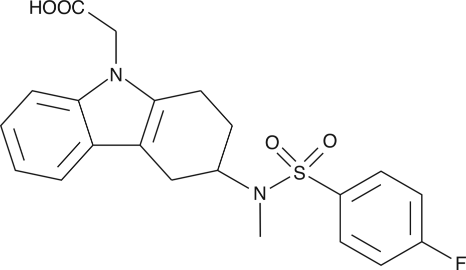 CAY10471 is an analog of BAY-u3405 which contains modifications that increase both its potency and selectivity for the human CRTH2/DP2 receptor. CAY10471 binds to the human CRTH2/DP2, DP1, and TP receptors with Ki values of 0.6, 1200, and >10,000 nM, respectively.