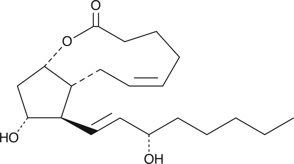 PGF2α 1,9-lactone is a lipid-soluble internal ester of PGF2α. It is resistant to hydrolysis by human plasma esterases even after incubation for 20 hours under physiological conditions. PGF2α 1,9-lactone exhibits little antifertility and vasoactivity compared to PGF2α.